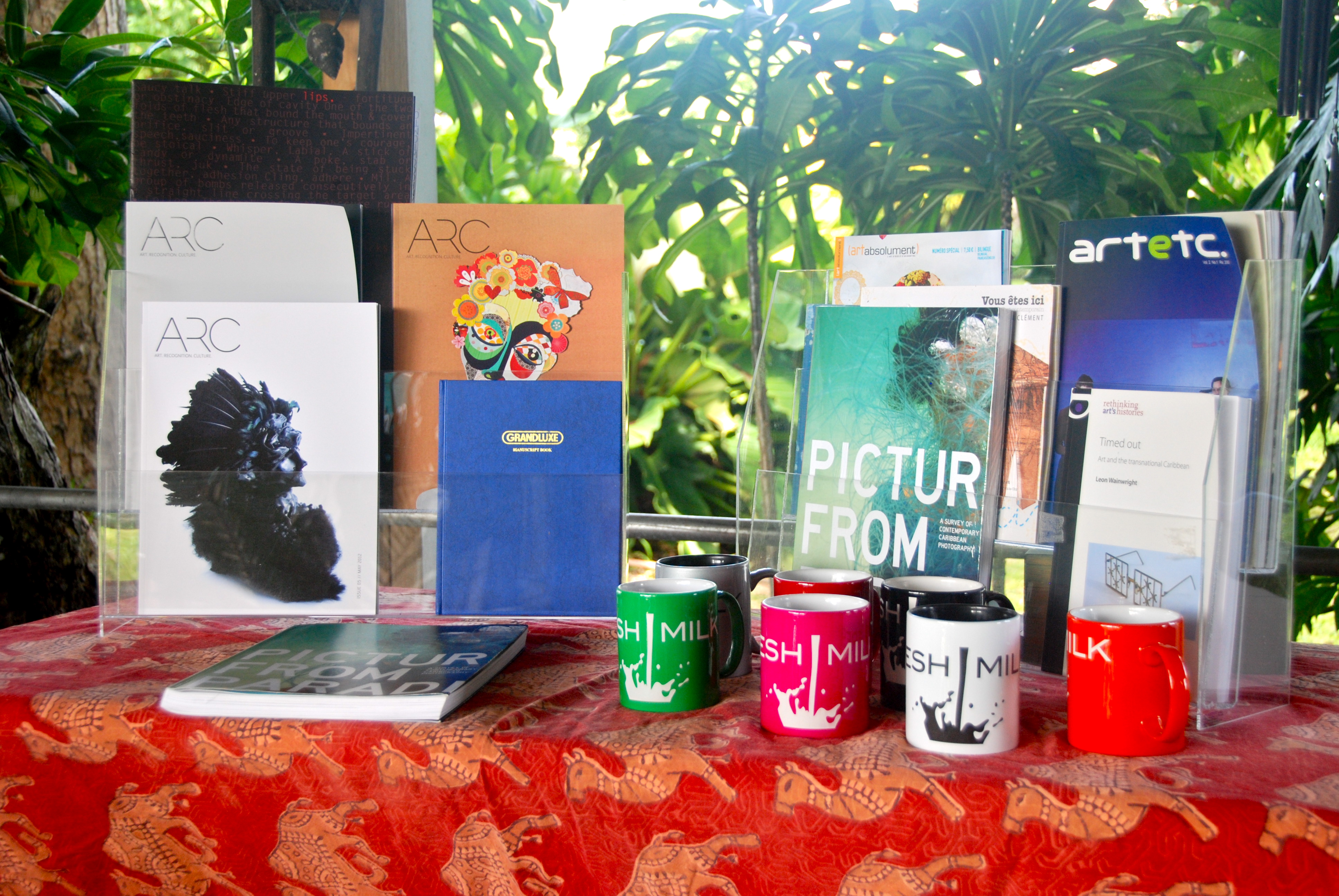 The sales table featuring FRESH MILK Mugs, Pictures from Paradise, ARC Magazines and Timed Out by Leon Wainwright Previous Next Published August 22, 2012 at 3872 × 2592 in Pictures from Tatiana Flores’ Seminar on Latin American Art from the 1990s – Present