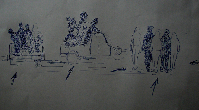That day I also met Aruban based artist Ciro Abath on a studio visit. Interestingly, even Ciro gives the present identity of the Caribbean man more importance, exploring the current state of being rather than simply being eager to going back to his roots. Later on the day we went to Ciro’s studio where he has a glass blowing workplace, which inspired to execute my plan of building a glass workplace in Suriname. That night while thinking about my performance concept, I was wondering why the city, why not the landscape where the safari jeeps are intended to drive?