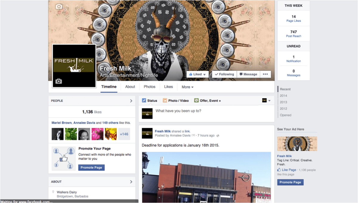 The Fresh Milk Facebook page Previous Next Published December 16, 2014 at 1315 × 749 in The Caribbean Digital: Fresh Art/Spaces