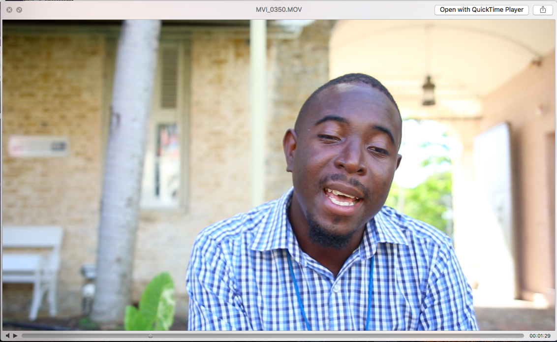 Still from interview with Dario Forte (Researcher at the Barbados Museum & Historical Society) in which he sings some Bajan folk songs. Image: UBP. Previous Next Published November 21, 2017 at 1132 × 695 in Umi Baden-Powell & Hannah Catherine Jones – Week 2 Blog Post Still from interview with Dario Forte (Researcher at the Barbados Museum & Historical Society) in which he sings some Bajan folk songs. Image: UBP.