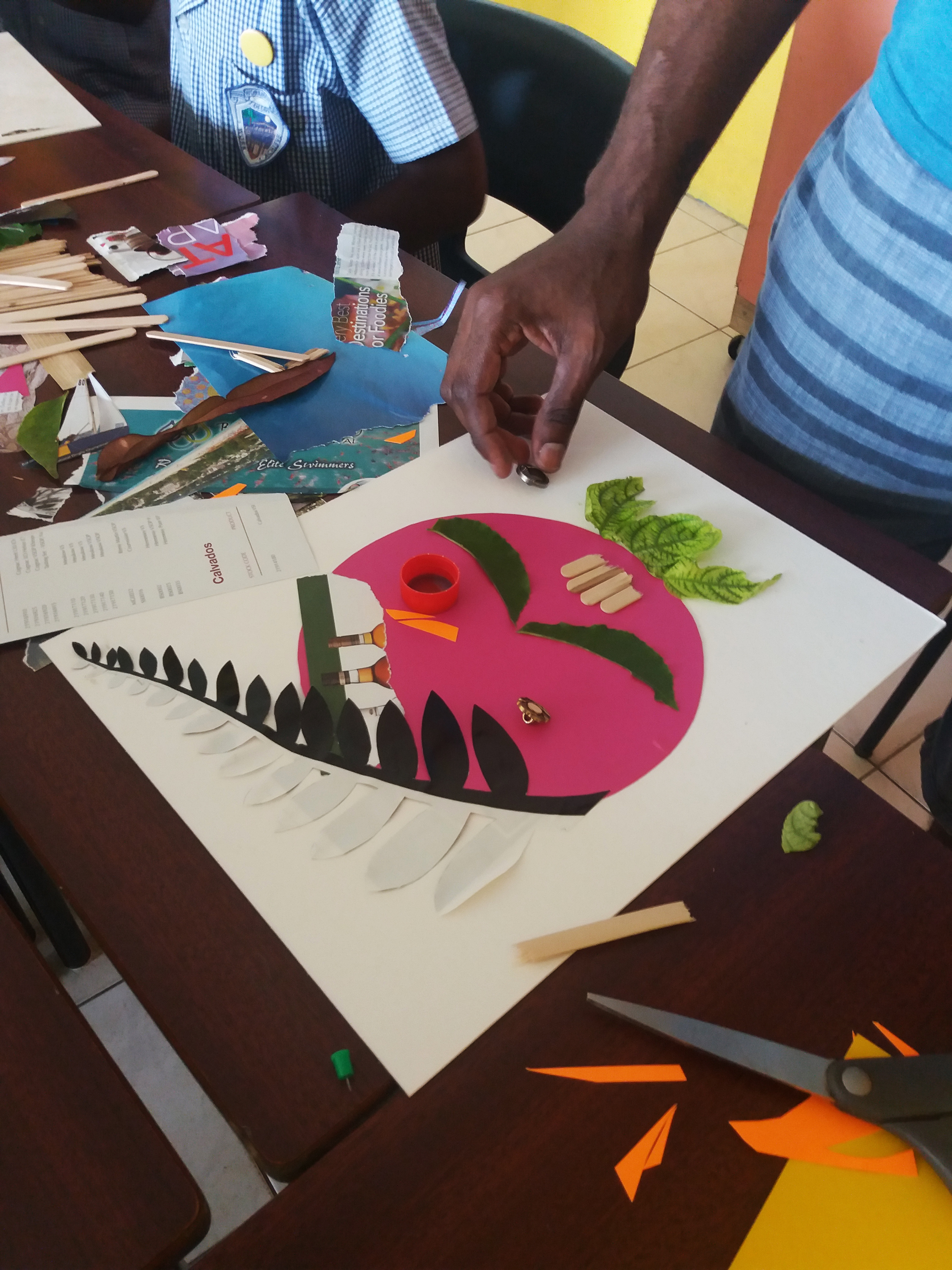 Ronald Williams leading a collage workshop at Workmans Primary School Previous Next Published May 25, 2018 at 3096 × 4128 in Ronald Williams’ Fresh Milk Residency – Week 3.5 Blog Post