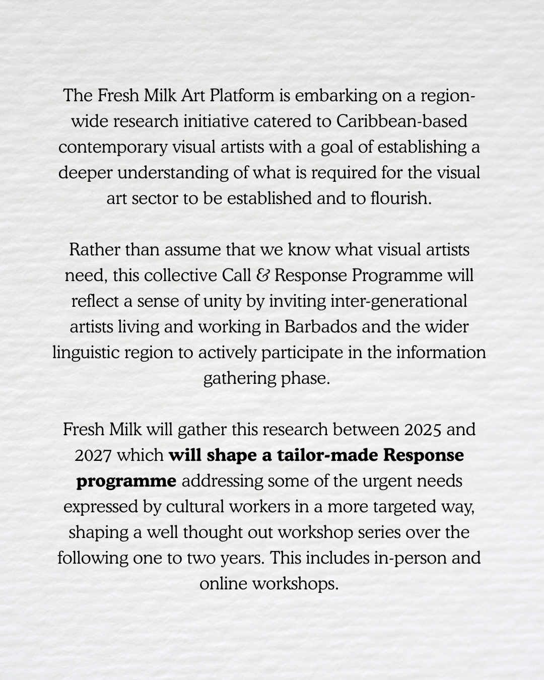 Call and Response Previous Next Published January 27, 2026 at 1080 × 1350 in Fresh Milk’s Call & Response Programme for Caribbean-based Contemporary Visual Artists – Phase 1