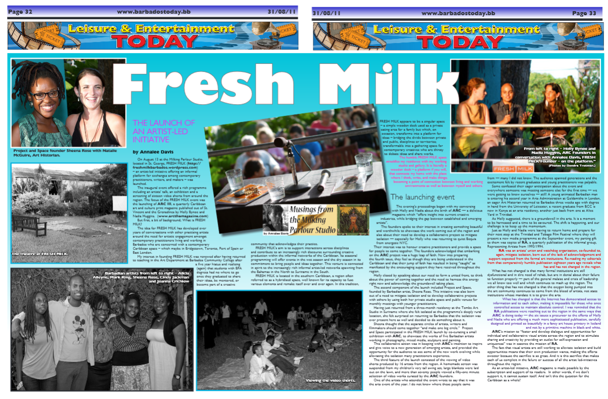 Performance art seems to be taking root in Barbados, and this can not the least be ascribed to the possibilities opened up by a private, non-commercial space like Fresh Milk. In late November, the platform thus hosted ‘Hustle de Money’ by Alberta Whittle (‘aka Big Red aka General outta Glitter Zone’).
