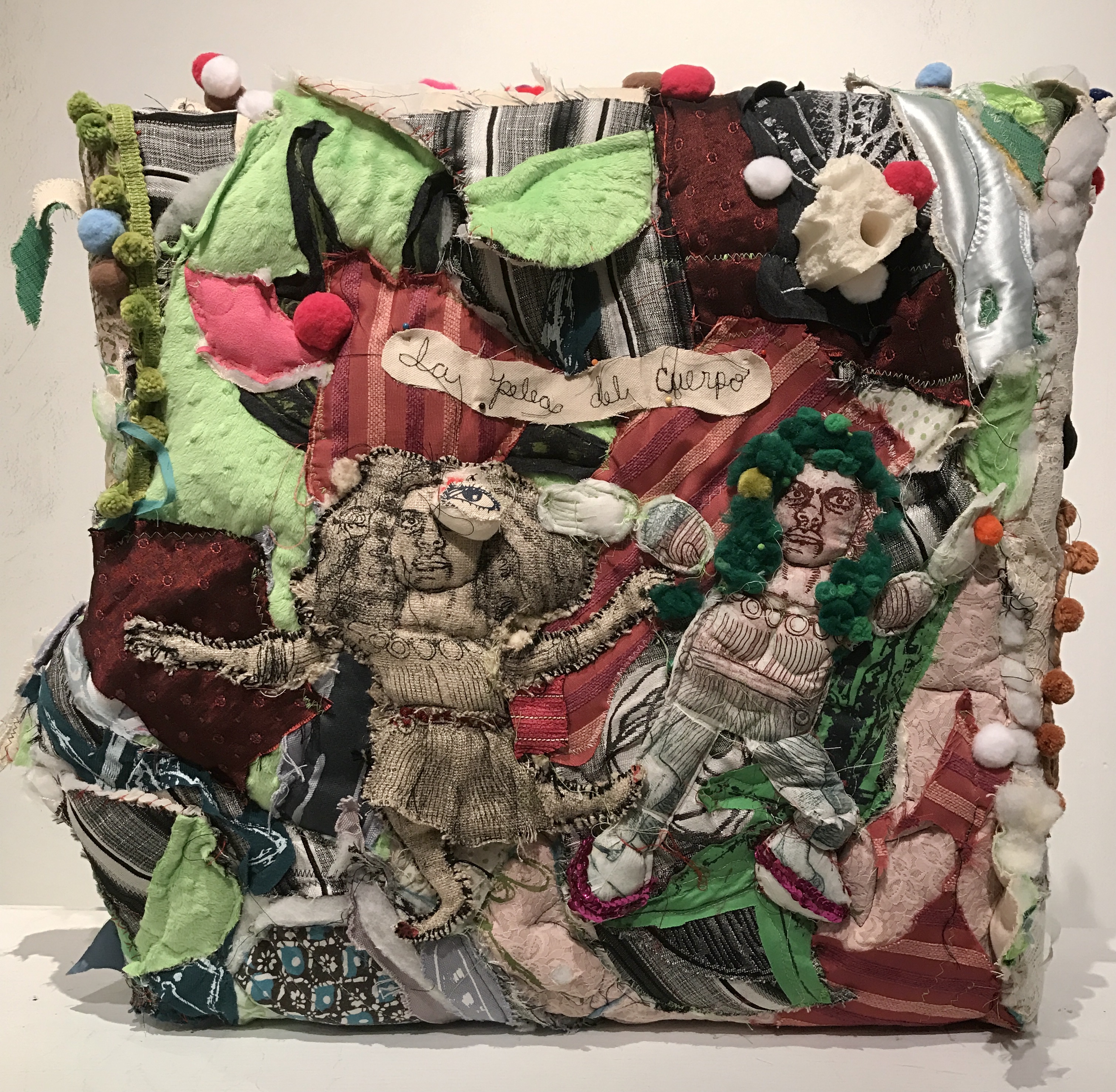 títeres impresos en intaglio y xerografía, caja de madera forrada de textiles