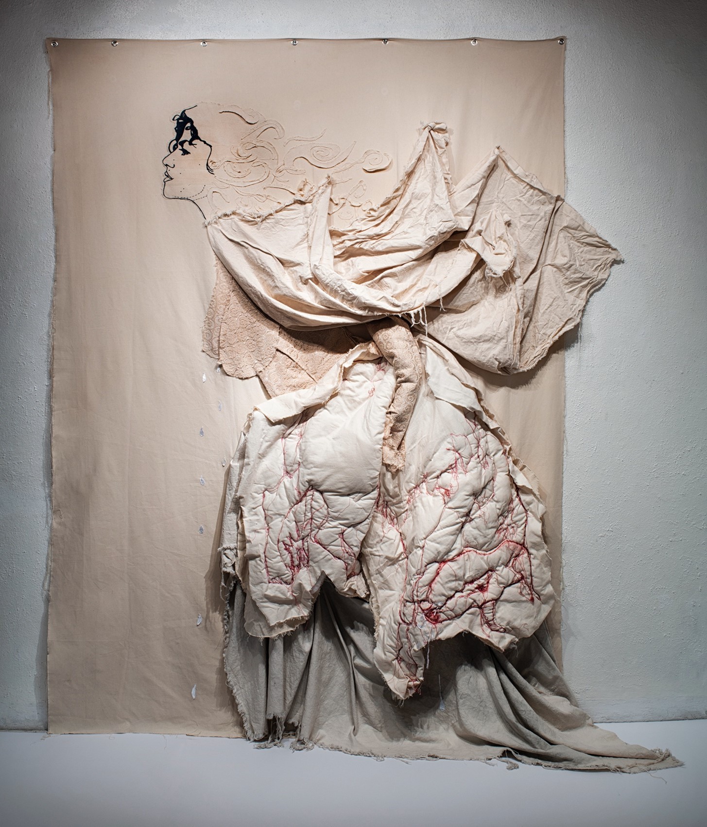 Milk, 2020, canvas with silkscreen, embroidery, ink, and other textiles, 243.8 x 205.7 x 38.1 cm Previous Next Published November 7, 2024 at 1455 × 1702 in TENDER GRANTEES 2024 – Interviews Like Loading...
