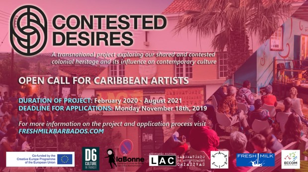 Through a new and dynamic partnership, CONTESTED DESIRES connects six innovative arts and cultural organisations across the global north and south. Led by D6: Culture in Transit (UK) they include La Bonne (Spain), LAC (Portugal), Xarkis (Cyprus) and Fresh Milk (Barbados). ECCOM (Italy), cultural experts in the field of interdisciplinary practice, will develop a unique capacity building and evaluation strand to the project, in association with the writer and researcher, François Matarasso.